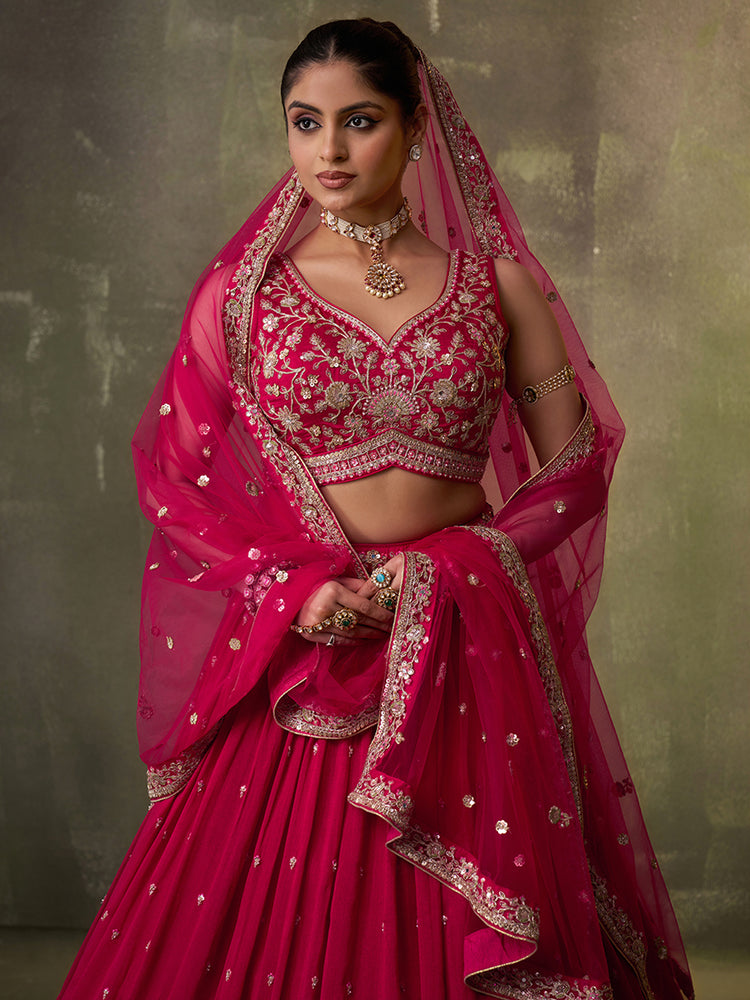 Georgette Fabric Sequins Thread & Embroidery Semi-Stitched Lehenga & Unstitched Blouse With Dupatta