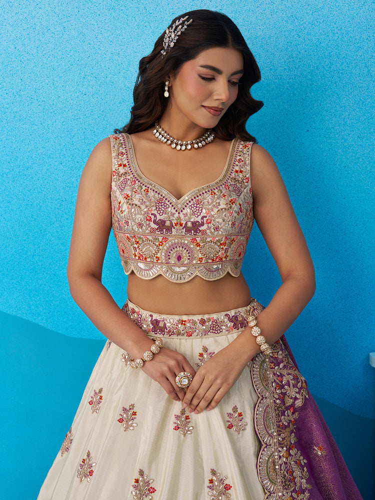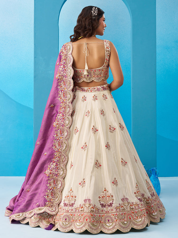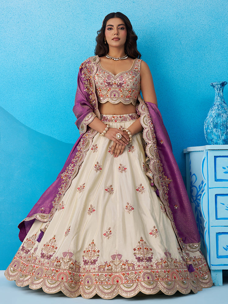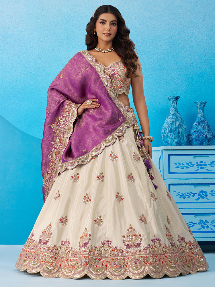 Purple Tissue Sequins Embroidered Semi-Stitched Lehenga Set