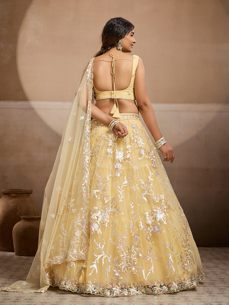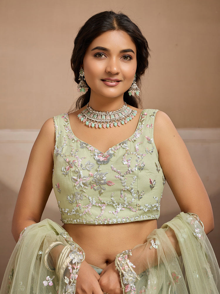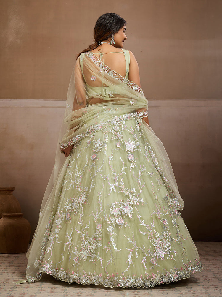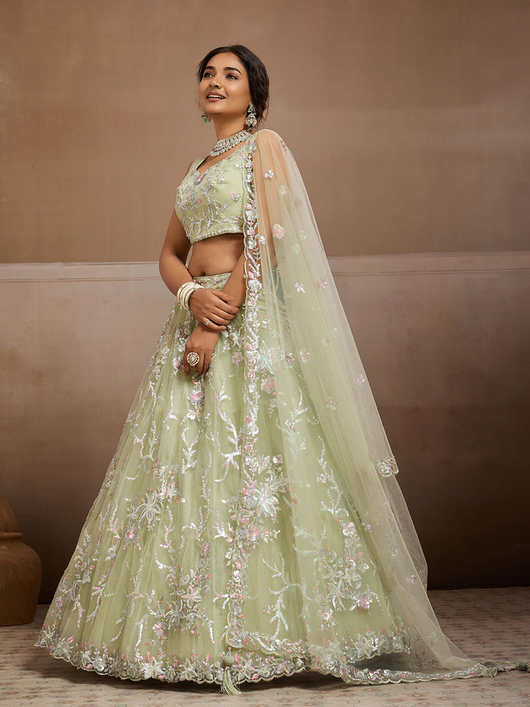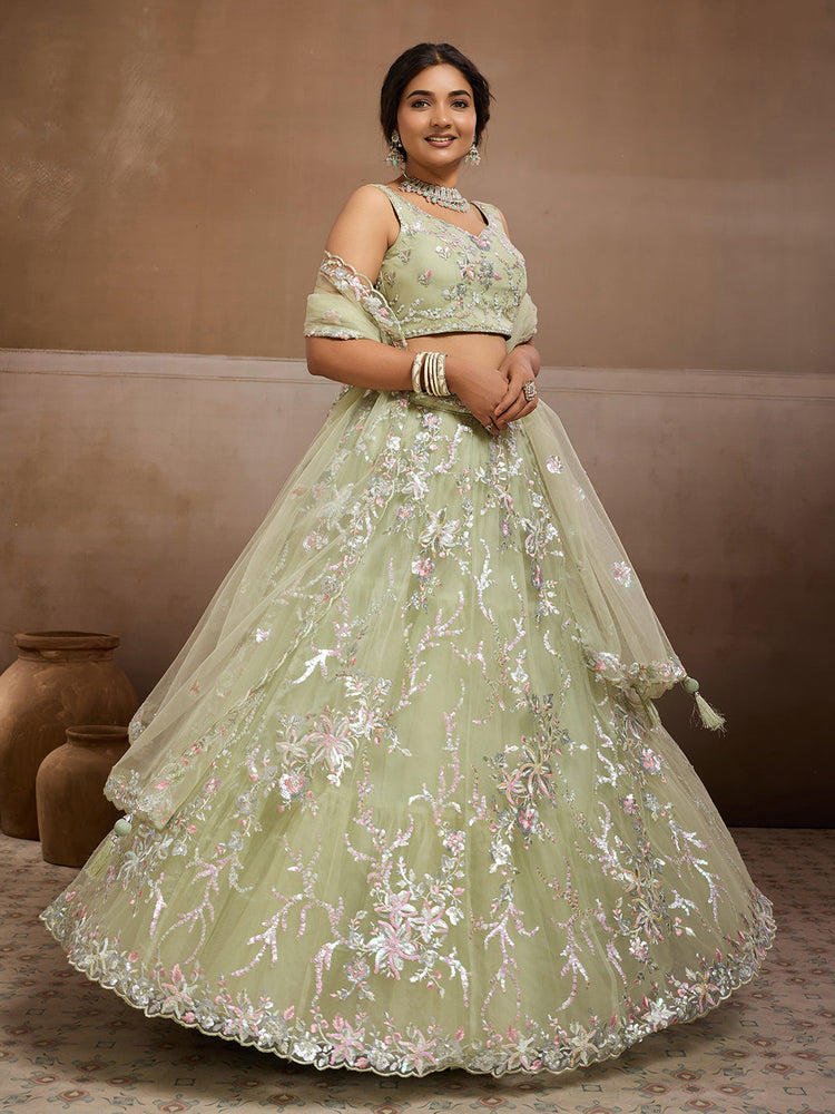 LIMEGREEN - Net Fabric Sequins embroidery Semi-Stitched Lehenga & Unstitched Blouse With Dupatta