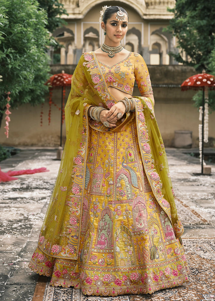 Lehenga Colour: Yellow color with heavy Mirror and Sequins Work Embroidered