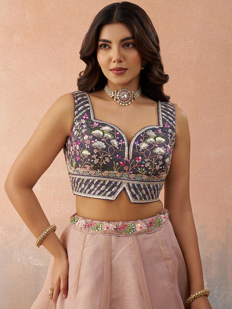 Ombre Purple and Mauve Sequins Embroidered Semi-Stitched Lehenga Set